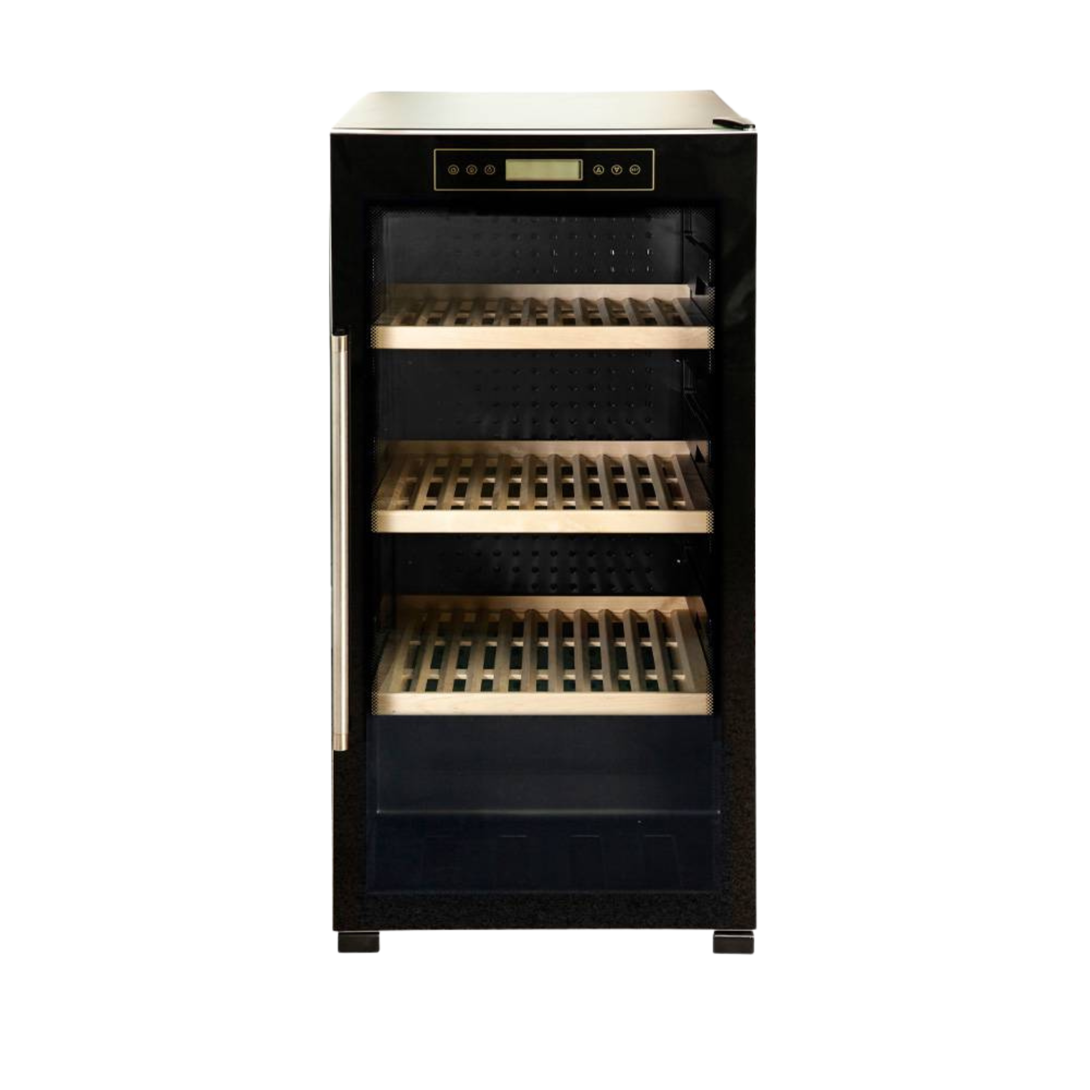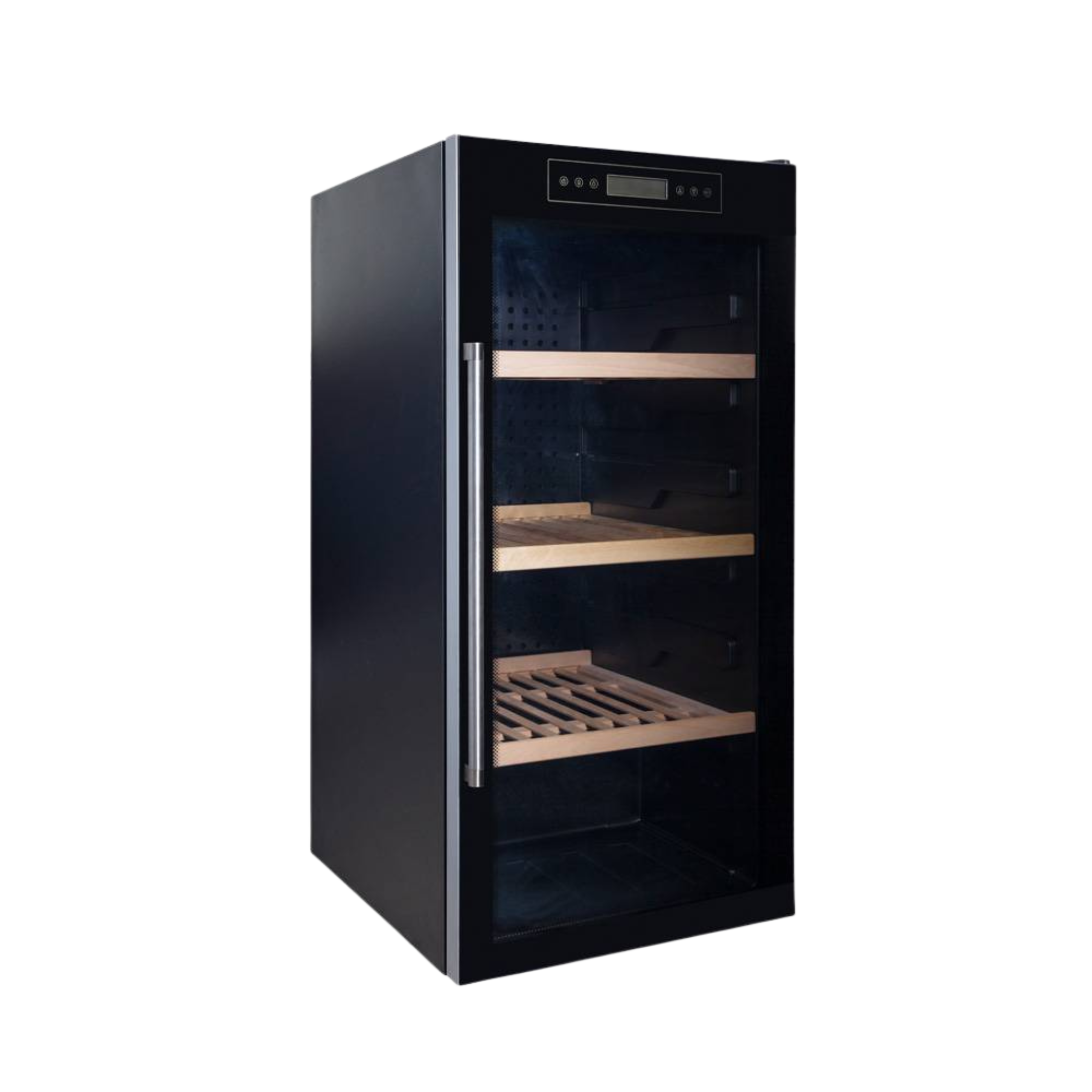 A hőmérséklet 5-20°C között állítható, így a 3 db fából készült polcon a borok mindig a legmegfelelőbb hőmérsékletre hűtve várják a vendégeket. Az érintésvezérelt panel és az LCD kijelző segítségével beállíthatja a kívánt hőmérsékletet a tökéletes hűtés érdekében. A hőmérséklet egyenletes eloszlásáról a ventilációs léghűtéses technika gondoskodik. A kompresszor csendes és rezgésmentes működésű.