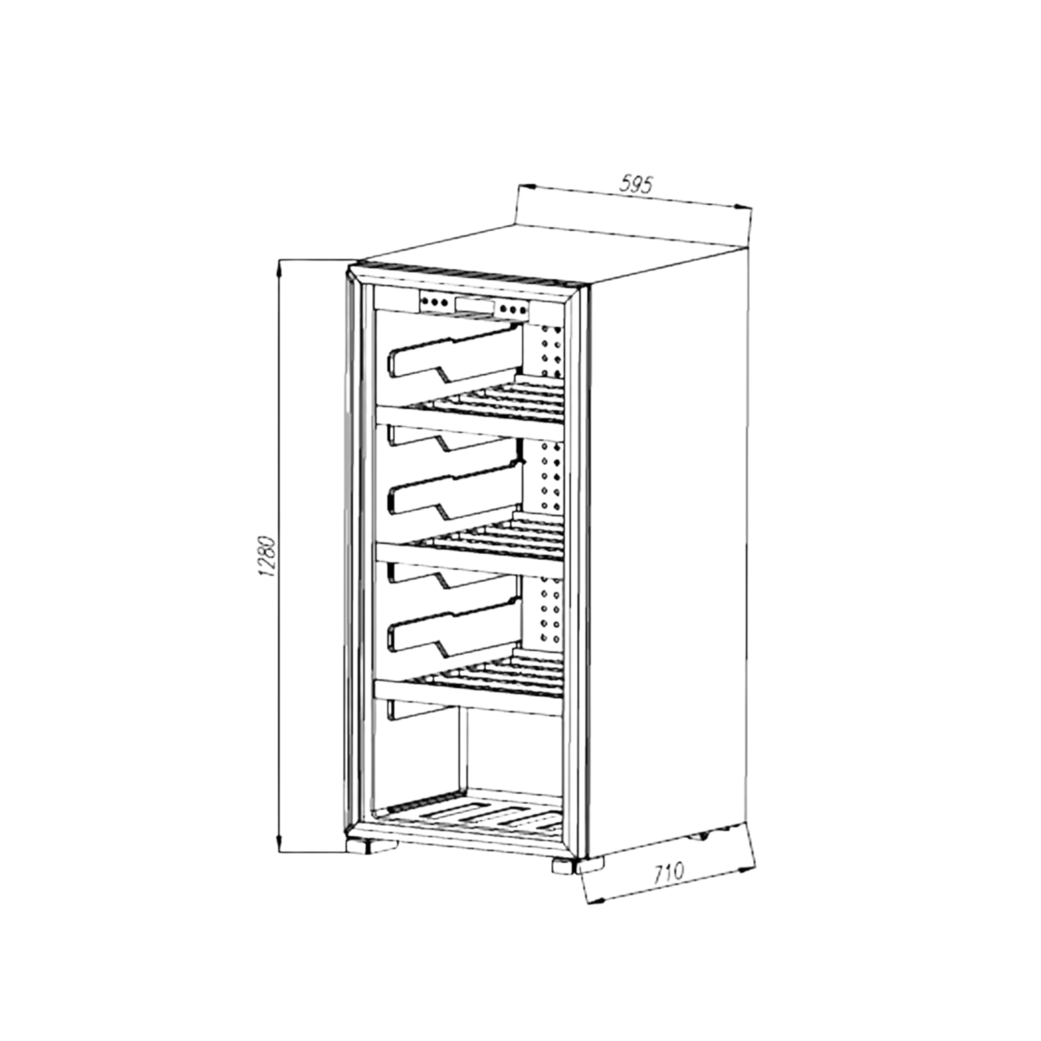 - Külső méret: 595x710x1280 mm
