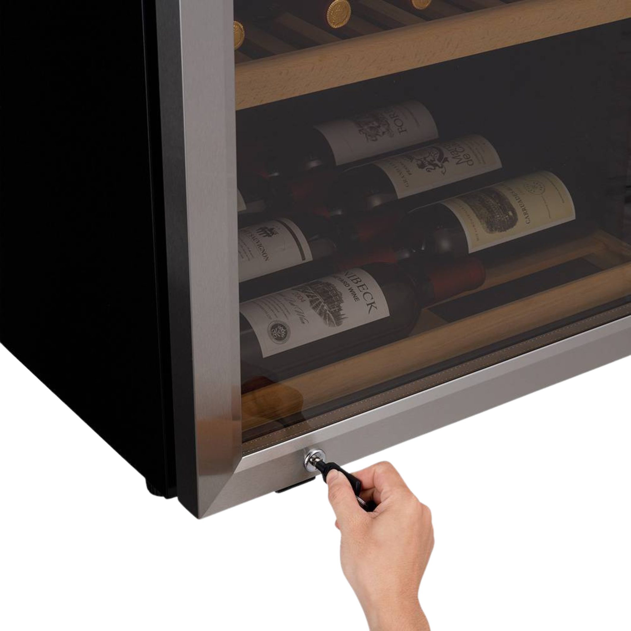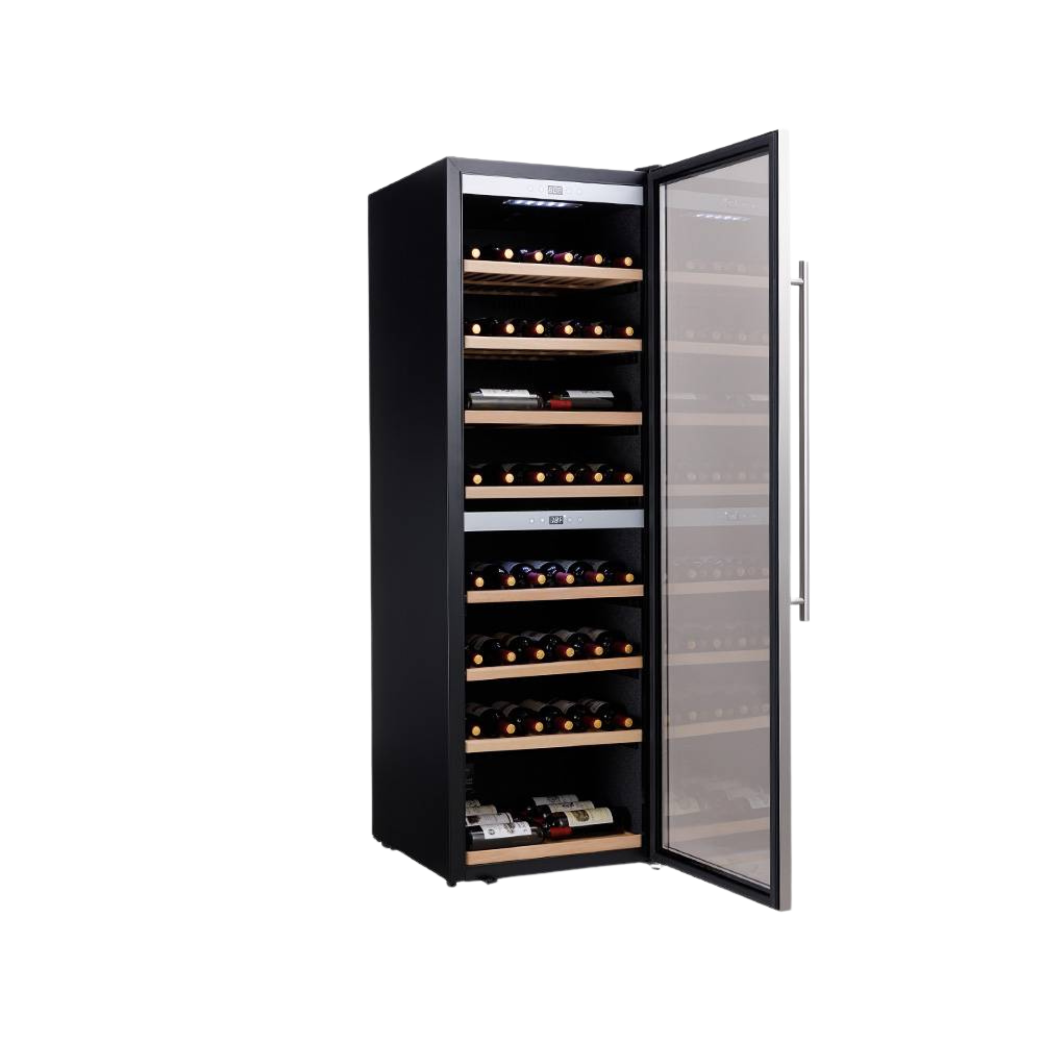 Szabadon álló borhűtő, amely tökéletesen illeszkedik az Ön egyedi bortárolási igényeihez. Stílusos megjelenésével a legjobb választás minden borkedvelőnek. A nagy kapacitású készülékben egyszerre akár 180 palack is elfér. A modern dizájn, az üvegajtó, a fa polcok tökéletesen illeszkednek minden üzletbe, vagy akár az otthoni dekorációba is.